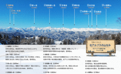 当館客室、展望デッキから一望の北アルプス後立山連峰。 その山名と山の説明を入れた展望図を制作しました。 ご希望の方は差し上げま…