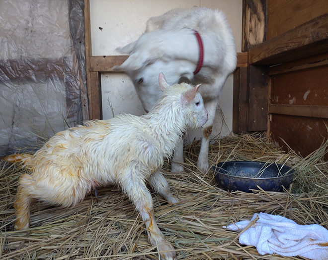 2024.3.11 東日本大震災から13年目の本日にキーウ(エリカの娘)が出産しました。 女の子2名です。 出産から10分で立ち上がりお乳を探しました。