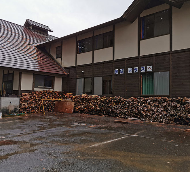 2020.12.5~12.8 冬支度がたくさんあります。 必須は薪割りです。 露天風呂は薪ボイラー、館内には2つの暖炉と薪の消費量が半端ではありません。 そして、ボランティア活動としての伐採活動で集まった材木の山。 2日間かけて助っ人の強力な手助けでおわりました。 そして3日目、4日目で軒下に積みました。 <1日目> <2日目>