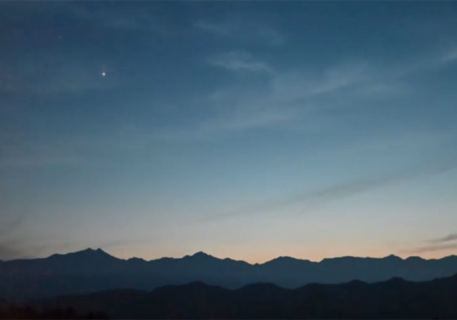 2026.2.5 昨日から連続の北アルプス絶景&月没です。 今朝は爺が岳の右肩に沈みました。 今朝は暖かくam7時ゼロ度。 …