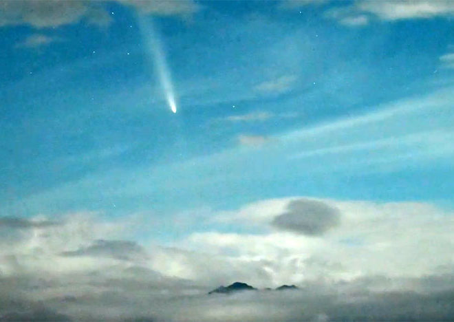 2024.10.15 午後になって北アルプスに雲がかかっていたのであきらめ気味にカメラをセット。 撮影後に確認したら雲の切れ間から流れていました。 雲の中に沈んでいますが爺が岳付近です。