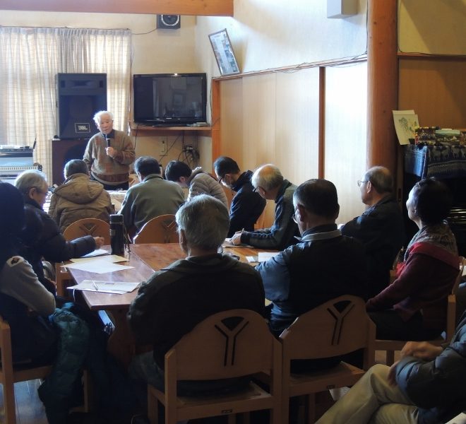 天空の古道「峰街道」は別名大町峰街道、または善光寺峰街道ともよばれています。その街道を整備し活用を考えようという有志の会の準備会が林りん館で開かれました。前半は思想家であり郷土史家の田中欣一先生の講演が行われました。