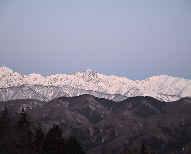2026.2.5 昨日から連続の北アルプス絶景&月没です。 今朝は爺が岳の右肩に沈みました。 今朝は暖かくam7時ゼロ度。 …