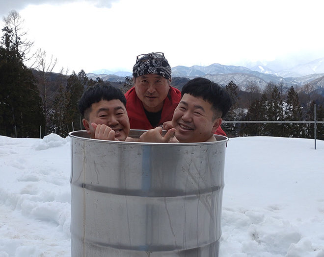 ご褒美にドラム缶風呂。通常は営業していませんが急きょ設置して入ってもらいました。