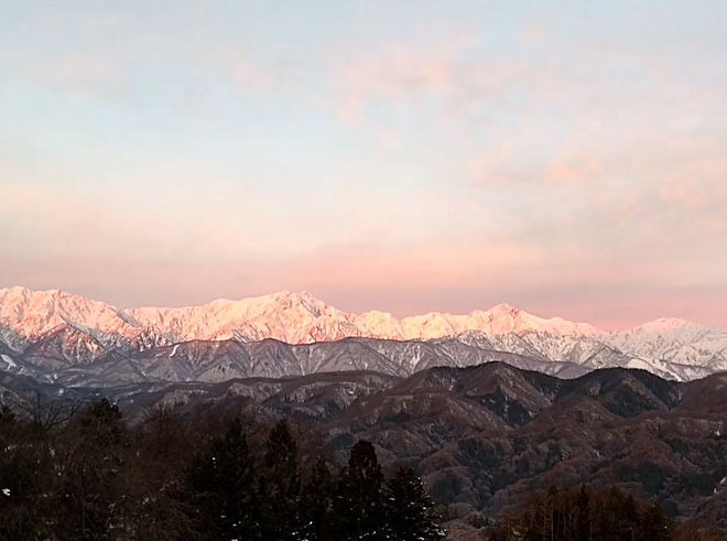 2026.1.17土曜日 早朝は北アルプス絶景となりました。 1階客室、2階客室そして食堂からでも北アスプス絶景の宿です。 …