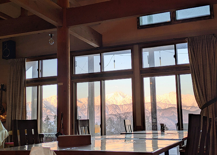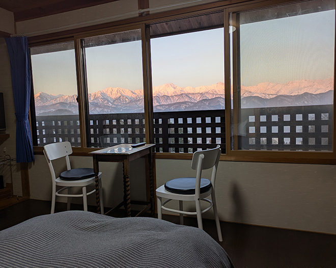 1階客室、2階客室そして食堂からでも北アスプス絶景の宿です。