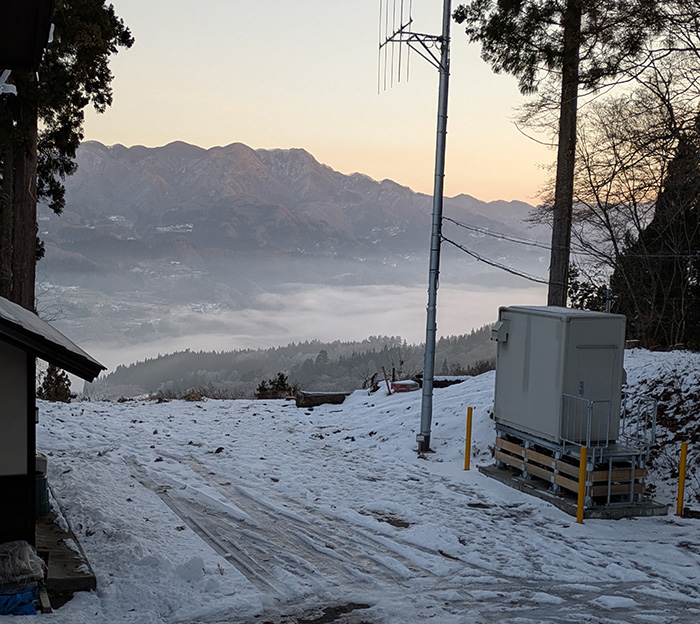 駐車場の北側は展望よくするために伐採したので虫倉山(信州100名山)がどっしりと見え、