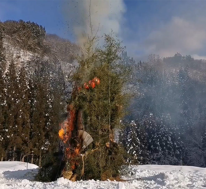 2021.1.10 信州小川村塩沢地区のどんど焼きです。 この集落のどんど焼きは小川村最大のものです。 集落の人たちが協力し合って作り上げるところがすばらしい。