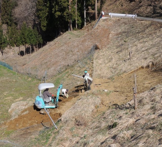 仲間たちの力を借りて、土砂崩落で埋まってしまったフェンスを掘り起こして、張替えました。