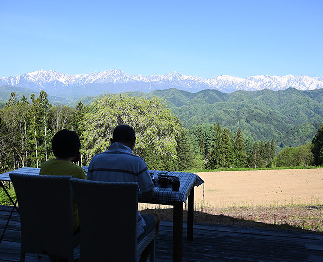 暖かくなってきたので展望デッキでの食事が可能となりました。 特に北アルプス絶景の朝食は好評です。 チェックイン時にご希望を伺います。