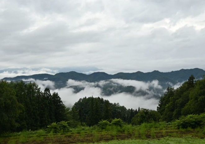 2023.7.14 昨日はときどき小雨、夜半にも降ったようです。 その雨が森からあがっています。 そして高層雲は西から東へ、 低層雲は南から北へ交差して流れています。