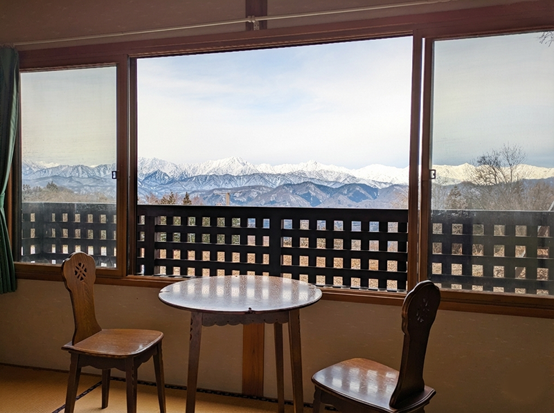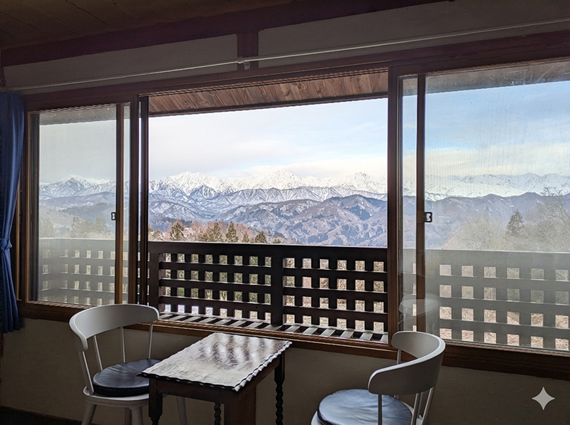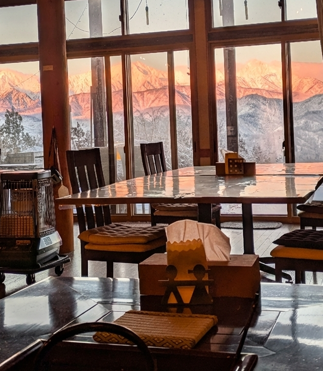 食堂からでも客室からでも北アスプス絶景の宿となっています。