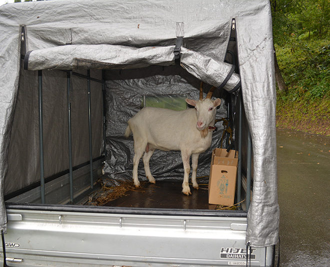 近くのヤギ牧場に来ているオスとのご対面のために短期の嫁入りに入りました。