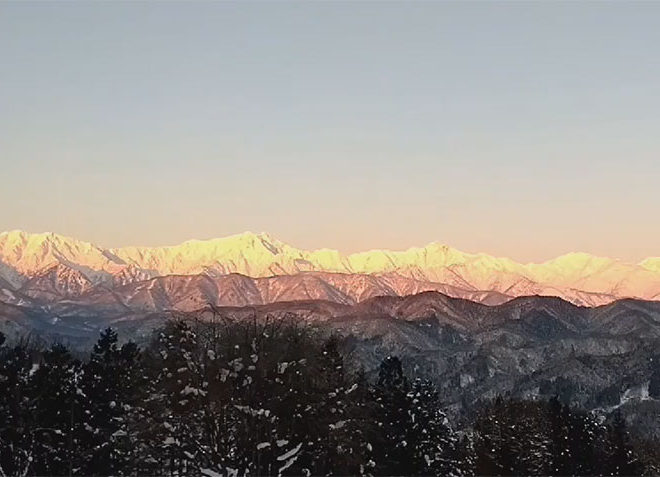 2026.1.17土曜日 早朝は北アルプス絶景となりました。 1階客室、2階客室そして食堂からでも北アスプス絶景の宿です。 …
