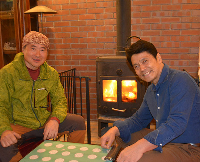 薪割りに熱中する峰さん