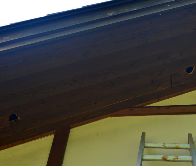軒下にキツツキに穴を開けられました!!