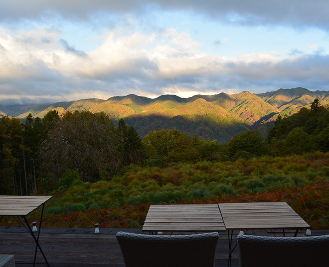 11月2日早朝の北アルプスに見惚れるお客様