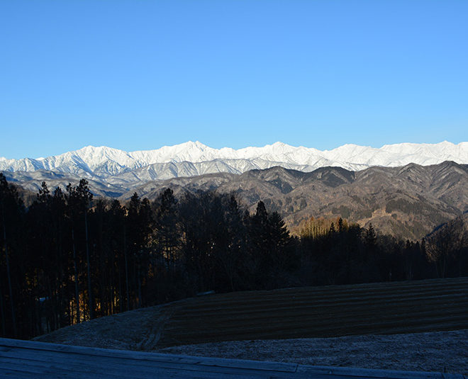 北アルプスが輝いています。