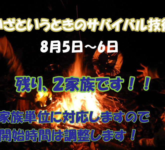 夏休みのイベント第一弾として「いざというとき役立つサバイバル技術」イベントを1泊2日で行います。