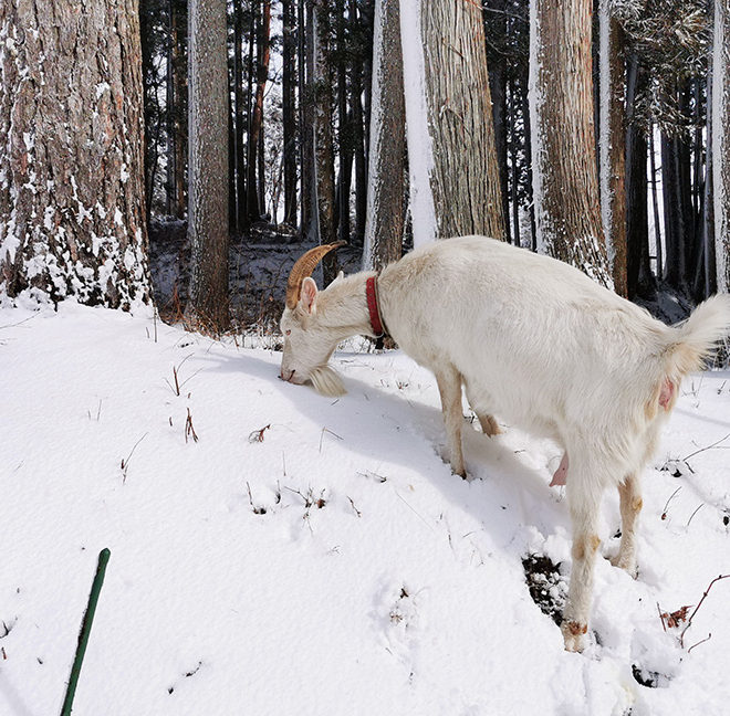 エリカはこの雪でも懸命に雪の下から草を見つけて食べています。