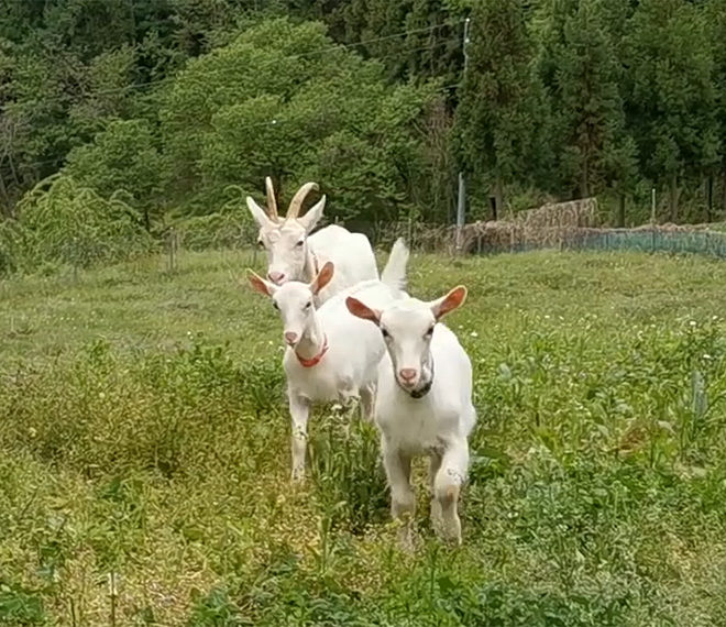 林りん館駐車場にあるヤギ小屋から放牧場へ。