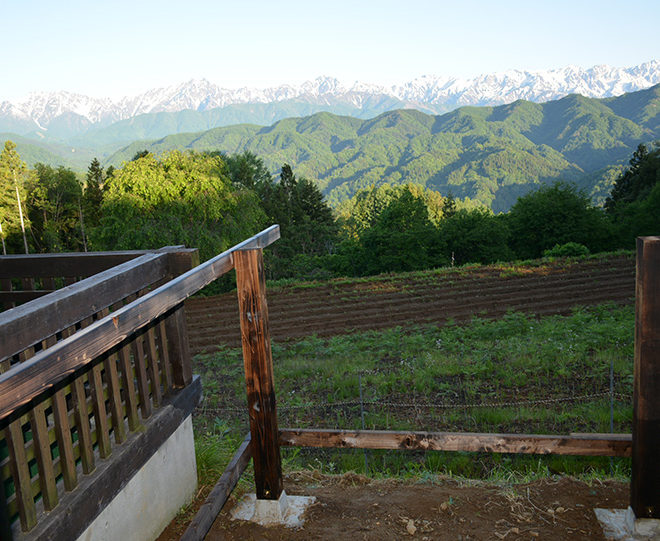 現行テラスの両側にアルプス展望テラスを拡張します。