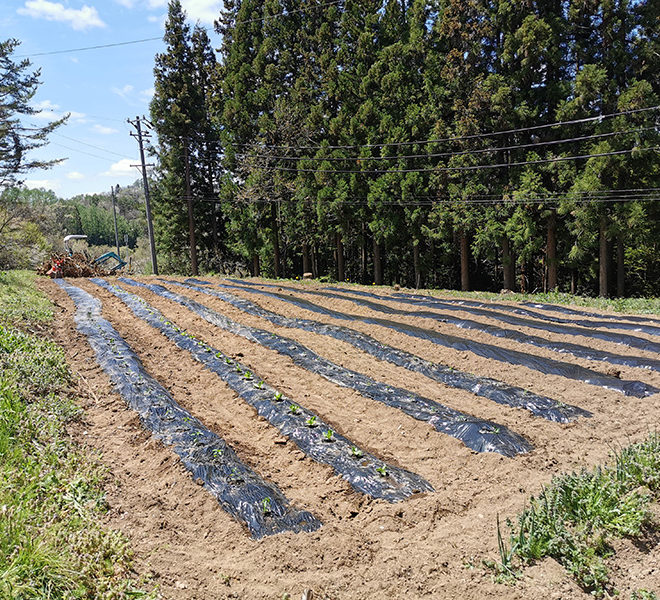 10数本の大木を伐採し、バックホーで切り株を抜き、たい肥を入れて何回も耕運機で耕す。