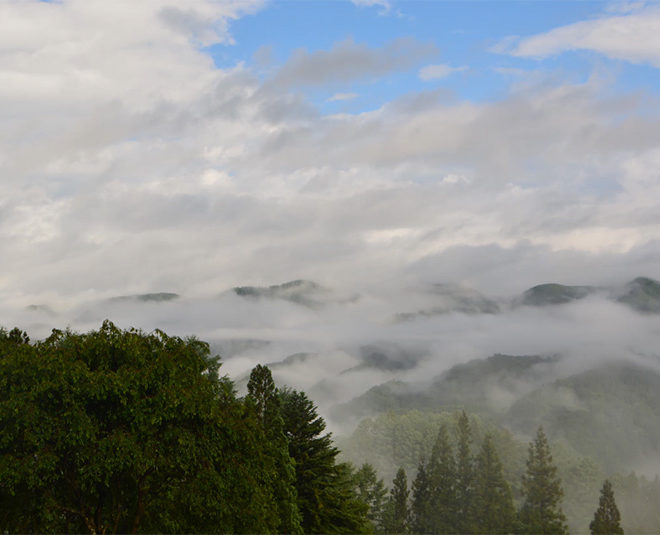 2020.7.1 今朝は昨日の雨が水蒸気となって湧き上がってきました。 湧き上がった雲が上空の偏西風に乗って左から右(北)へ流れます。 結局北アルプスは顔を出しません。