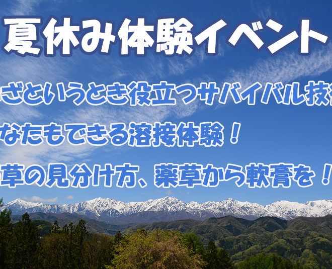夏休みの思い出になり、かつ山遊び、野遊びとして役立つイベントです。