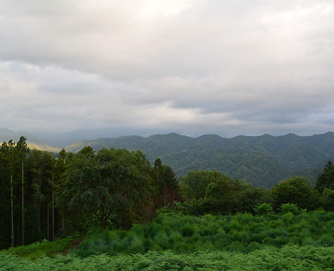 8月15日早朝の林りん館は晴れ間も見える天候です。