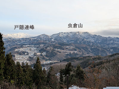 駐車スペースは戸隠連峰が見える方向となります。北アルプスは館内食堂前展望デッキもしくは左に回り込んでいただければ見られます。