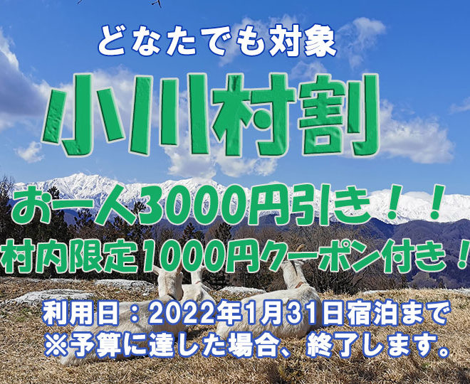 さらに、信州割観光クーポン2,000円分と小川村限定クーポン1,000円が付きます。